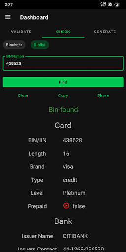This app helps you to find out the information regarding a particular bin has credit card verifier. Credit card bin number is first six digit of its card number. Ccbins pro bin checker is a credit card bin numbers database for credit card and debit card bin search information lookup. To validate type the bin in the specified field below.
