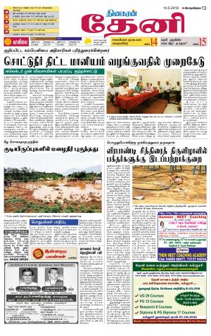 Dinakaran paper theni today. Aug 31 2020. Dinakaran is a live tamil news portal offering online tamil news movie news in tamil latest tamil news tamil news paper online astrology rasi palan india news in tamil world news in tamil political news in tamil business news in tamil temple news in tamil cinema and sports news in tamil. It was founded in the year 1977 by mr. Dinakaran is a daily tamil newspaper.